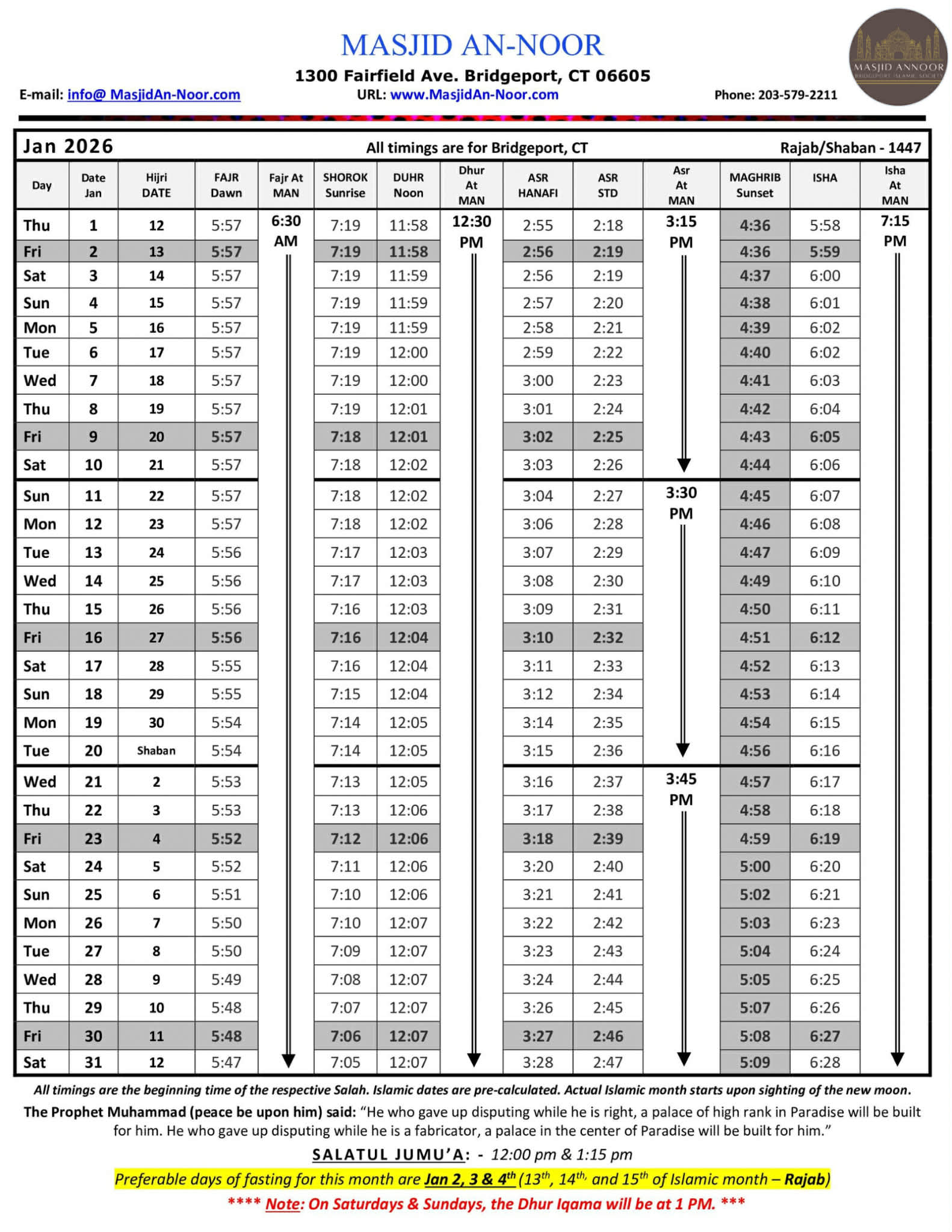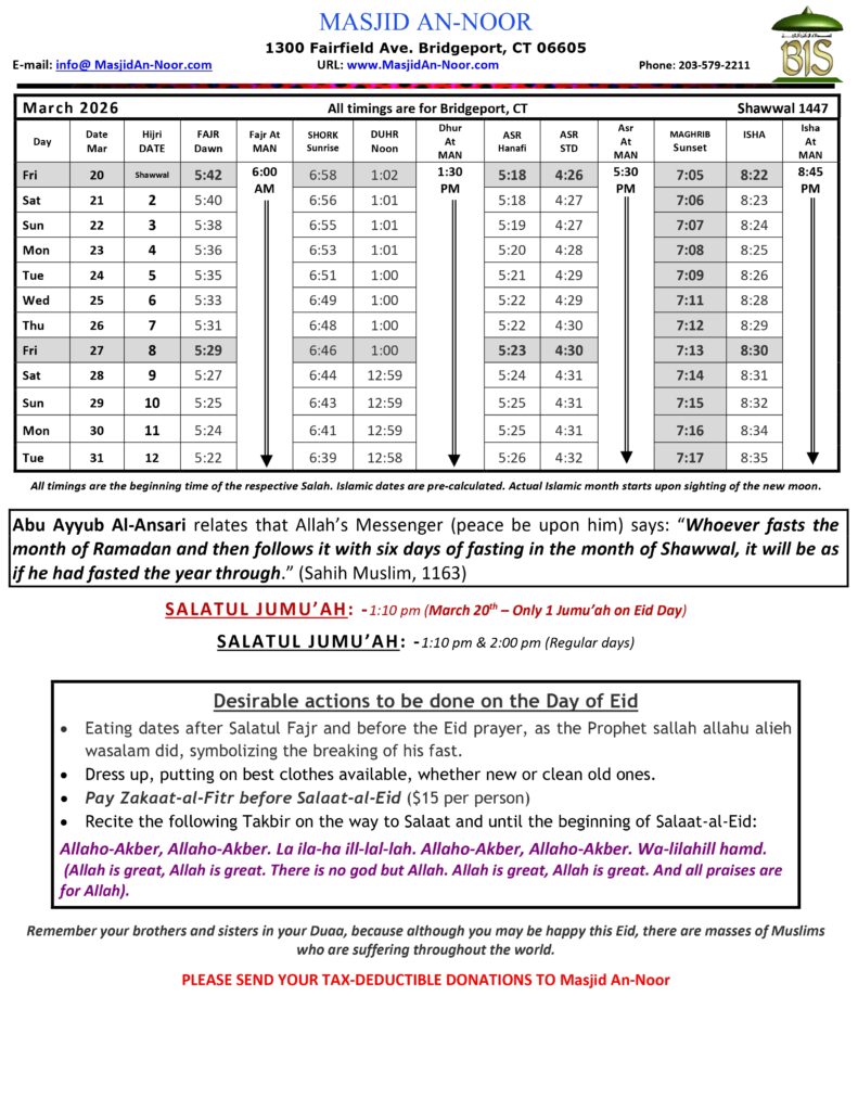 Click HERE or Scroll Down For Salah Schedule